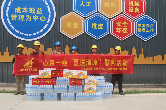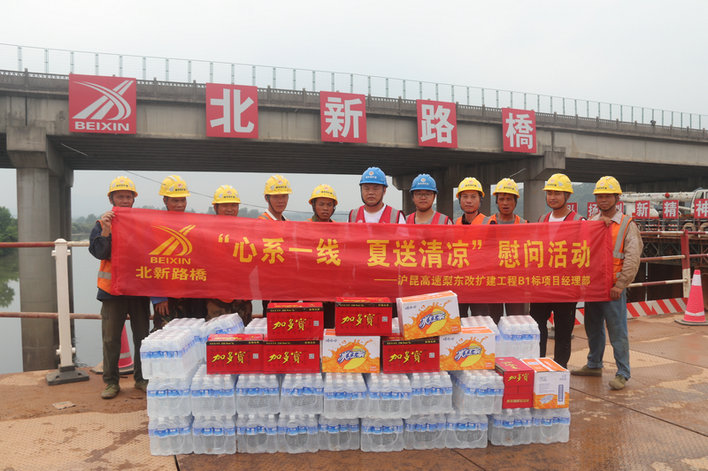 橫峰訊(通訊員翟潤潔 蔡依琳 )炎炎夏日送清涼,絲絲關(guān)愛入心田。正值大干快上火熱施工期,江西上饒地區(qū)持續(xù)高溫悶熱天氣給堅(jiān)守一線的施工管理人員和建筑工人帶來了嚴(yán)峻“烤”驗(yàn)。5月31日,北新路橋集團(tuán)長沙分公司滬昆高速梨園至東鄉(xiāng)段改擴(kuò)建工程B1標(biāo)項(xiàng)目(以下簡稱:滬昆B1標(biāo)項(xiàng)目)根據(jù)長沙分公司工會統(tǒng)一部署,組織開展了“心系一線、夏送清涼”慰問活動,為堅(jiān)守施工一線,不辭勞苦付出的施工管理人員和建筑工人,送上一份清涼、一份關(guān)懷。
