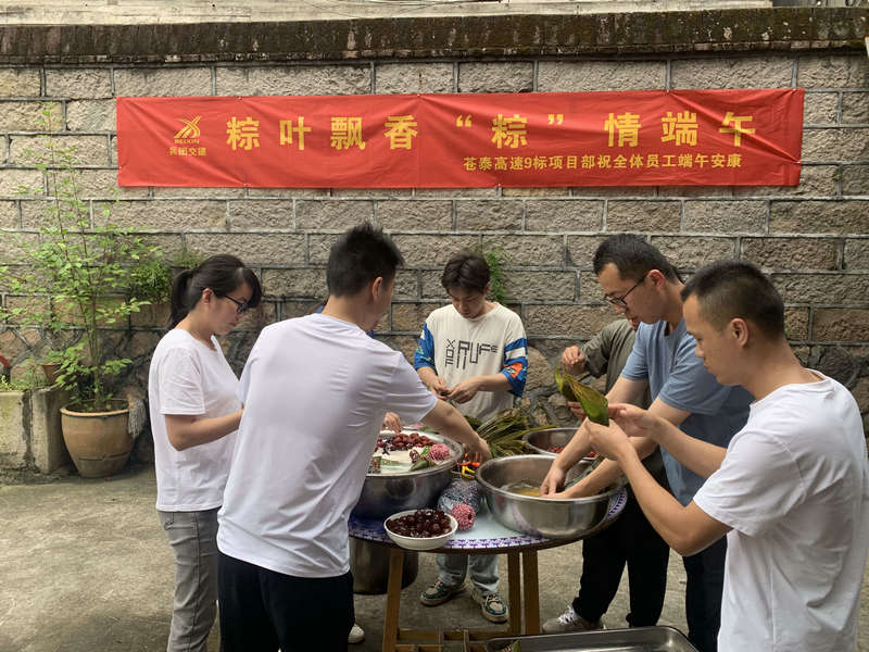為進(jìn)一步豐富項(xiàng)目部業(yè)余生活,促進(jìn)員工間相互交流,提高工作熱情,打造幸福和諧的項(xiàng)目氛圍,同時(shí)也為了答謝項(xiàng)目部全體員工的辛勤工作,6月18日,兵團(tuán)交建蒼泰9標(biāo)項(xiàng)目部開展了“粽葉飄香粽情端午”活動(dòng),以包粽子的形式,迎接端午節(jié)的到來。