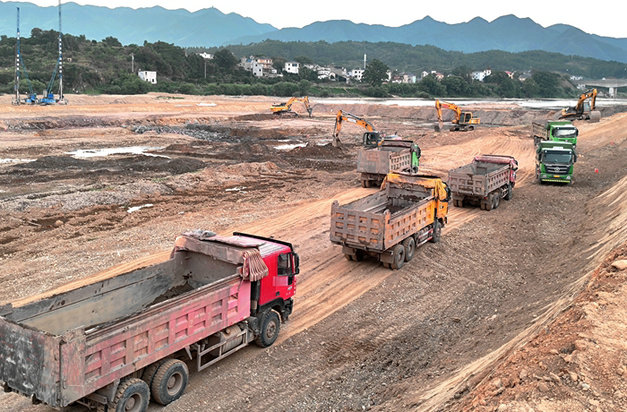 鐵路工程建設(shè)網(wǎng)訊 在常山江航電閣底樞紐工地,20多臺大型機(jī)械設(shè)備協(xié)同作戰(zhàn),在各工序施工中發(fā)揮其最大效能,截止8月18日開工一個(gè)月,圍堰、導(dǎo)流墻和泄洪閘基坑已初具規(guī)模。