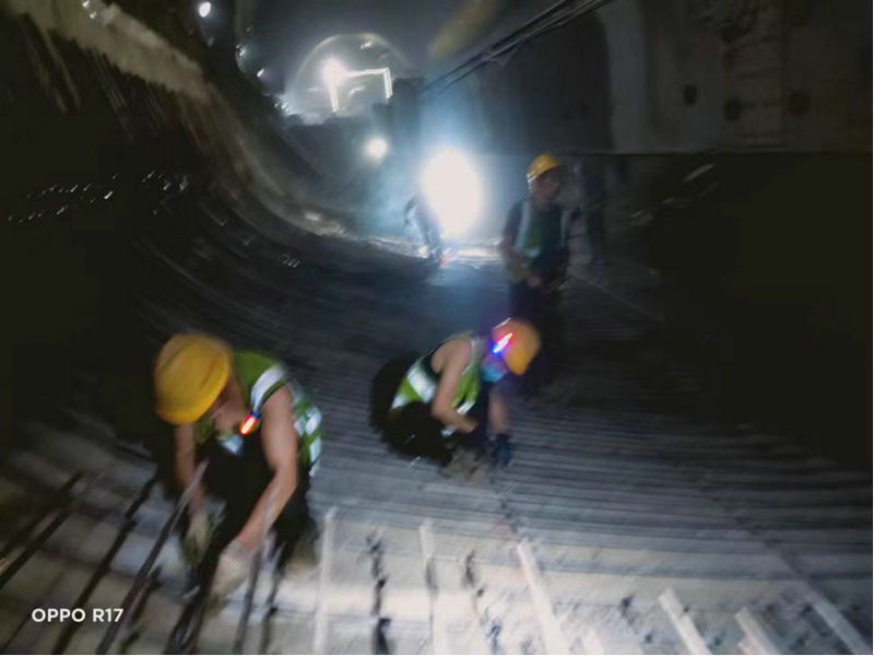 項目部中梁山隧道出口員工進行仰拱干勁板扎