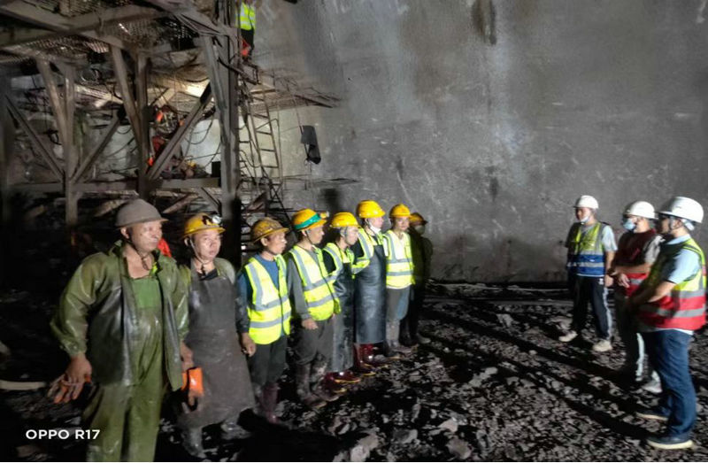 項目部中梁山隧道掘進工班在洞內(nèi)進行班前安全教育動員,鼓舞士氣,增強戰(zhàn)勝困難信心。