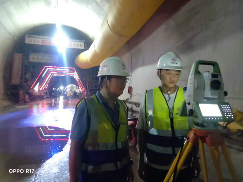 項目部測量隊在中梁山隧道進口進行洞內(nèi)導(dǎo)線復(fù)測