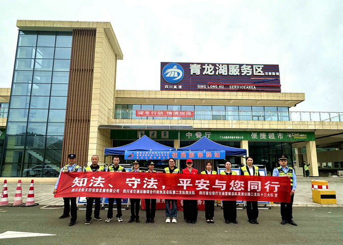法到您身邊——在服務(wù)區(qū)便民服務(wù)點(diǎn)懸掛橫幅,利用電子屏滾動(dòng)播放活動(dòng)主題及與群眾生產(chǎn)生活密切相關(guān)的交通法、消防法、食品安全法等內(nèi)容,讓過往旅客一進(jìn)入服務(wù)區(qū)就感受到濃厚的法律宣傳氛圍。