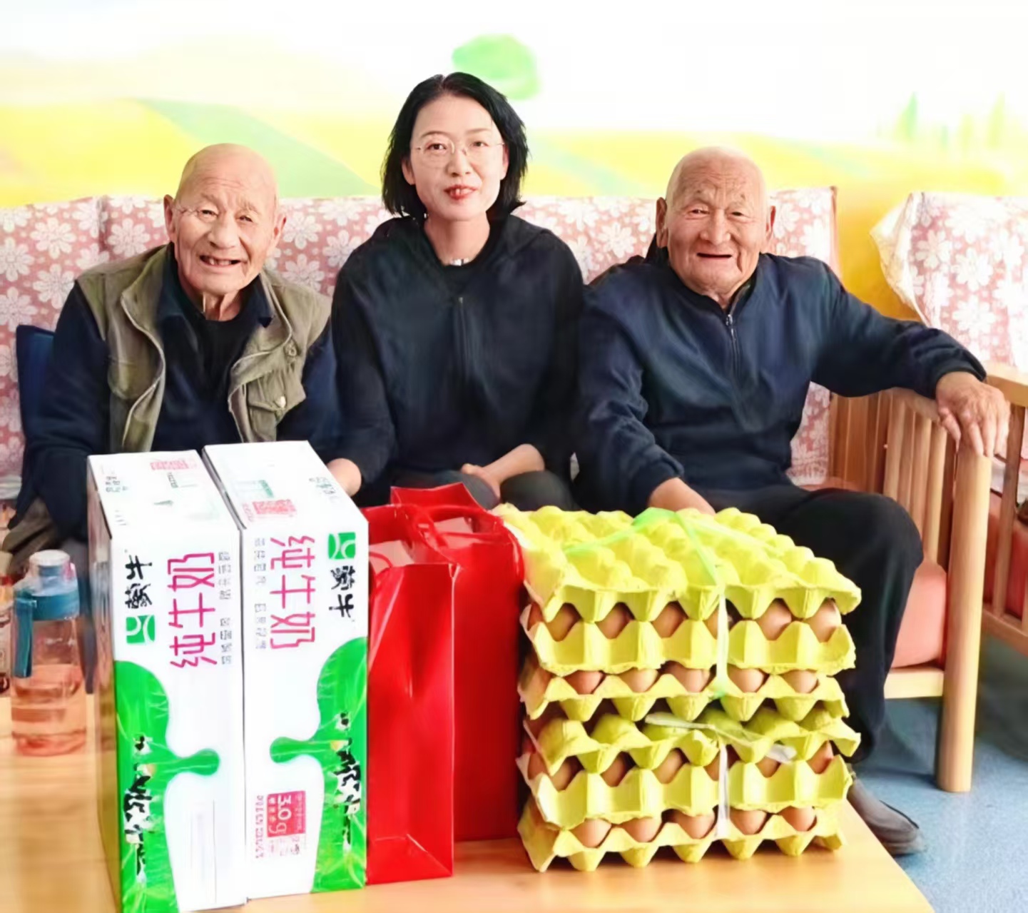 圖2為:奇臺三十里大墩社區(qū)黨支部書記王娜(左二),與該院長者、老黨員張正明(右一)李文生(右三)親切合影,兩位老黨員切身感受到了“處處有關愛 節(jié)日有溫度”。