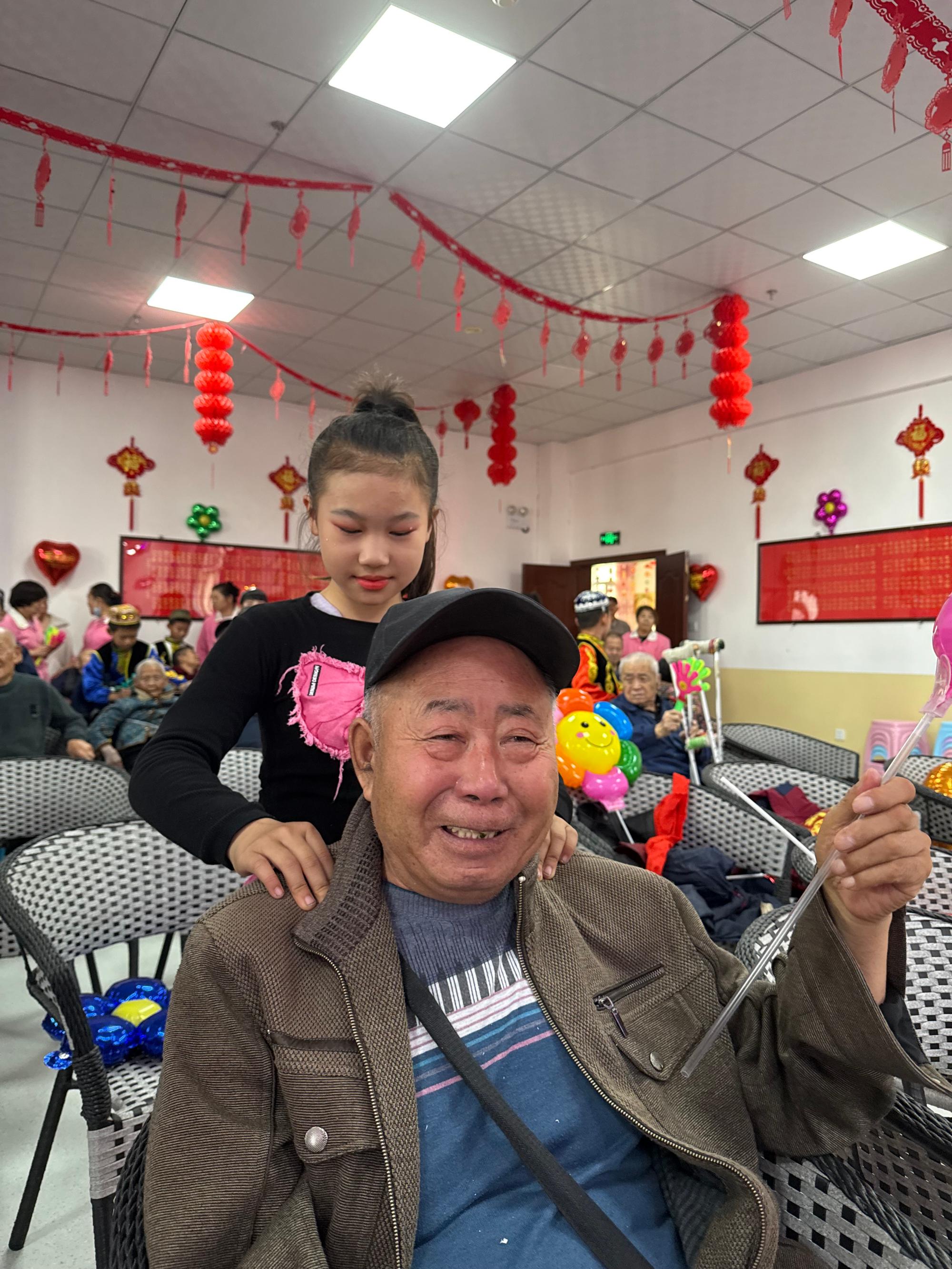 表演結束后,孩子們化身“小小暖心天使”,主動走到爺爺奶奶身邊,輕聲詢問身體狀況,然后小心翼翼地為他們捏肩、捶背。“爺爺,這個力度您覺得舒服嗎?”“奶奶,您肩膀這里酸不酸?”孩子們溫柔的話語和輕柔的動作,像一股暖流涌入長者們的心田。與此同時,新湖總廠小學的師生代表還將精心準備的慰問品一一送到長者手中,每一份慰問品都承載著對長輩的尊敬與關愛,讓長者們在重陽佳節(jié)感受到了濃濃的暖意。