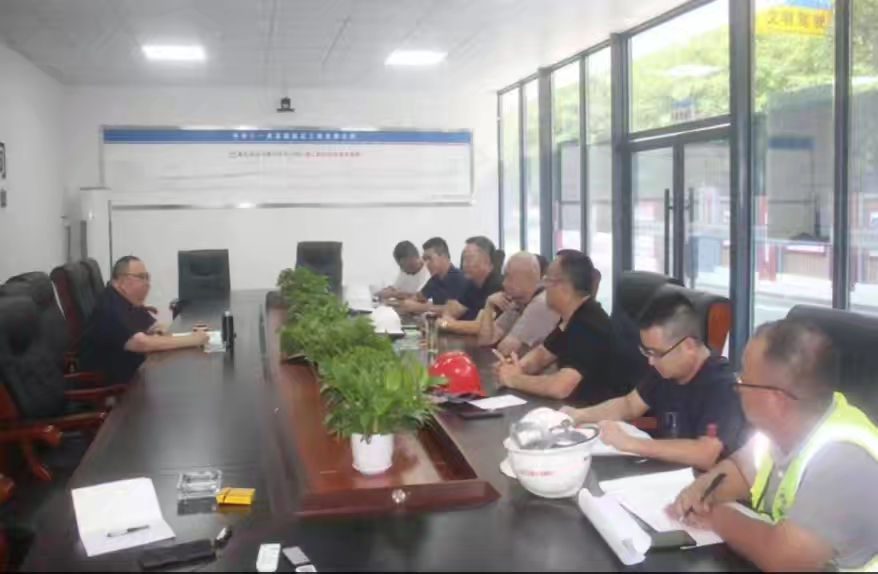 總承包部指揮長李兵(左1)組織召開18標(biāo)項(xiàng)目優(yōu)化施工方案會(huì)議