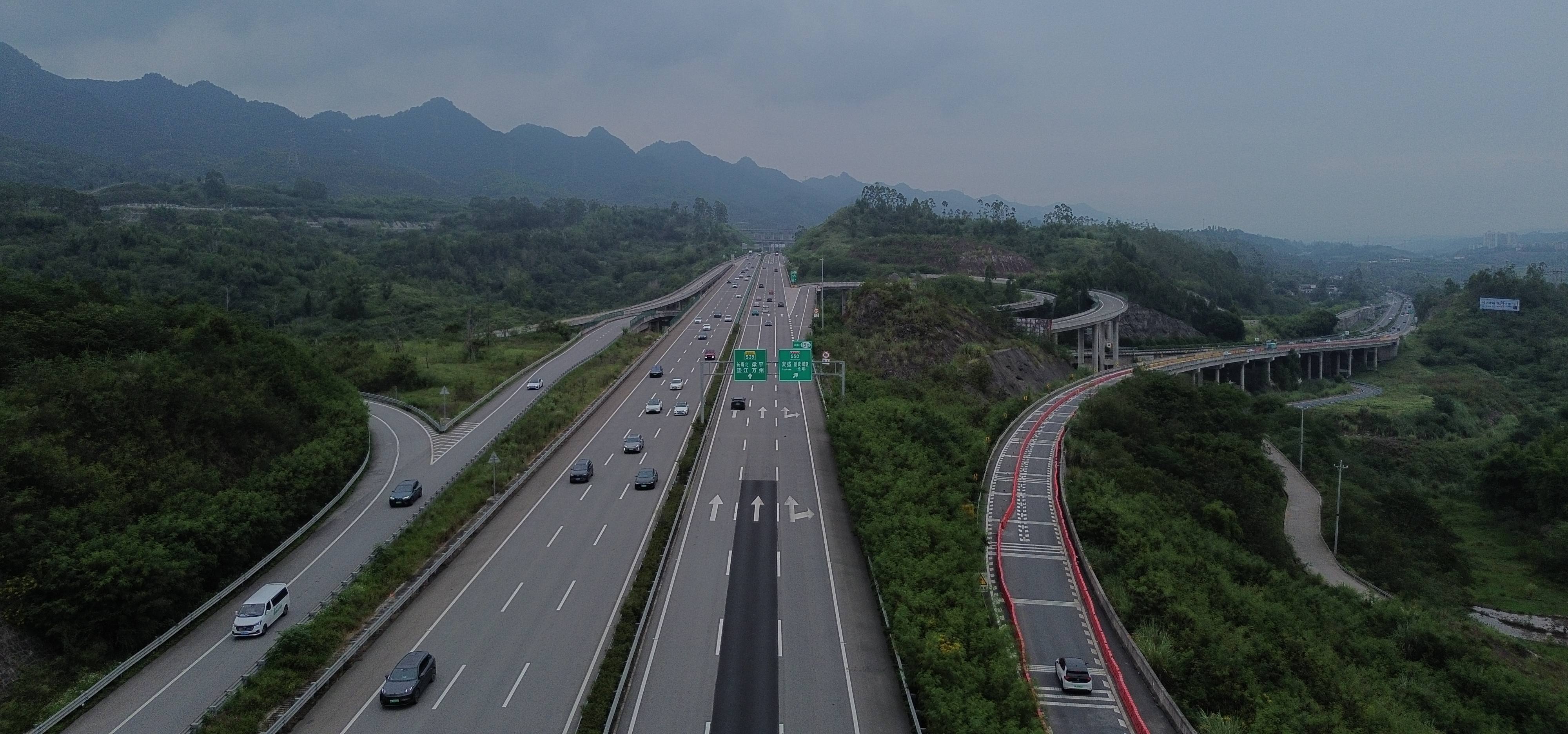 國(guó)慶期間,中梁山隧道進(jìn)口施工便道運(yùn)輸棄渣的車(chē)隊(duì)成河,在施工便道國(guó)旗的輝映下,襯托出濃郁的國(guó)慶的氣氛。