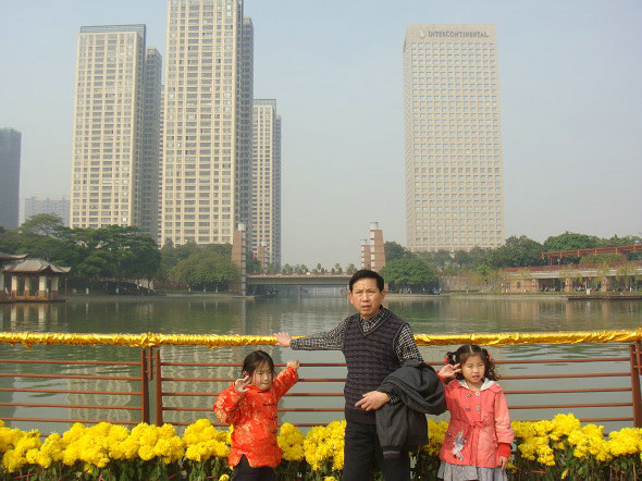 作者帶雙胞胎女兒元旦在廣東佛山千燈湖游園照片